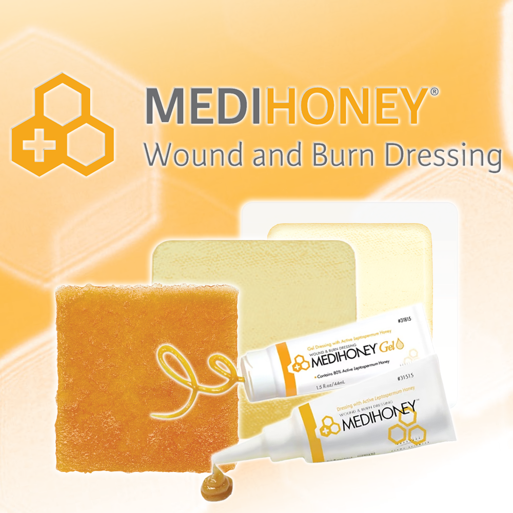 In essence, Medihoney naturally draws the body’s own, innate enzymatic fluid to the dead tissue. The necrotic skin is broken down to liquid, and pushed out into the dressing.