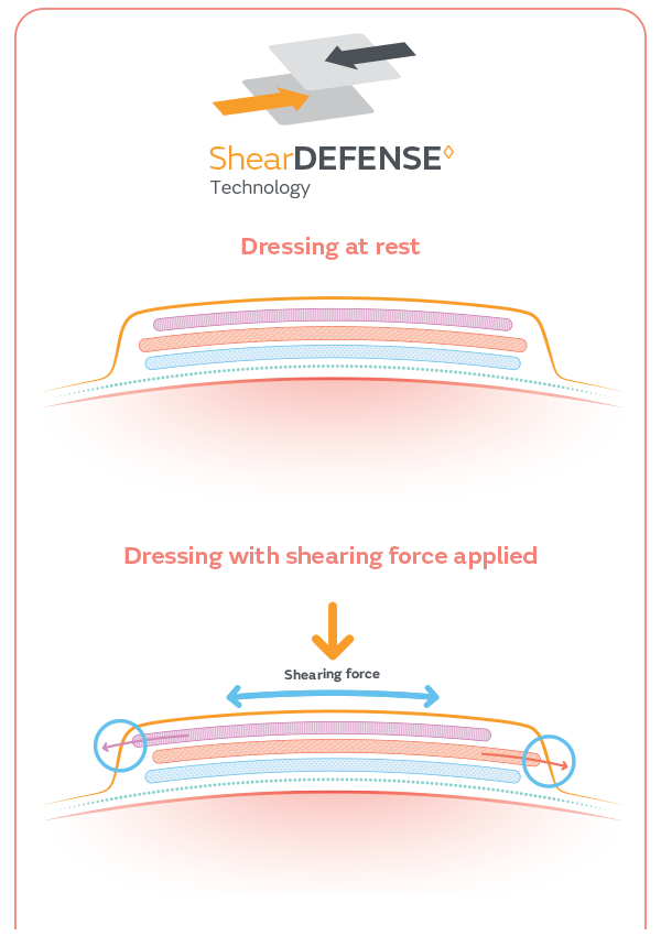 Absorbs shear forces and reduces soft tissue strain to minimise the risk of pressure injuries