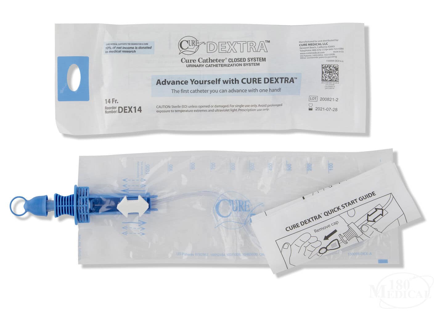 The sterile, single-use Cure Dextra is an innovative closed system catheter. It features polished eyelets on a pre-lubrictaed catheter tip with integrated 1000mL collection bag. All users, including individuals seeking greater independence due to limited dexterity, will want to give Cure Dextra a try.