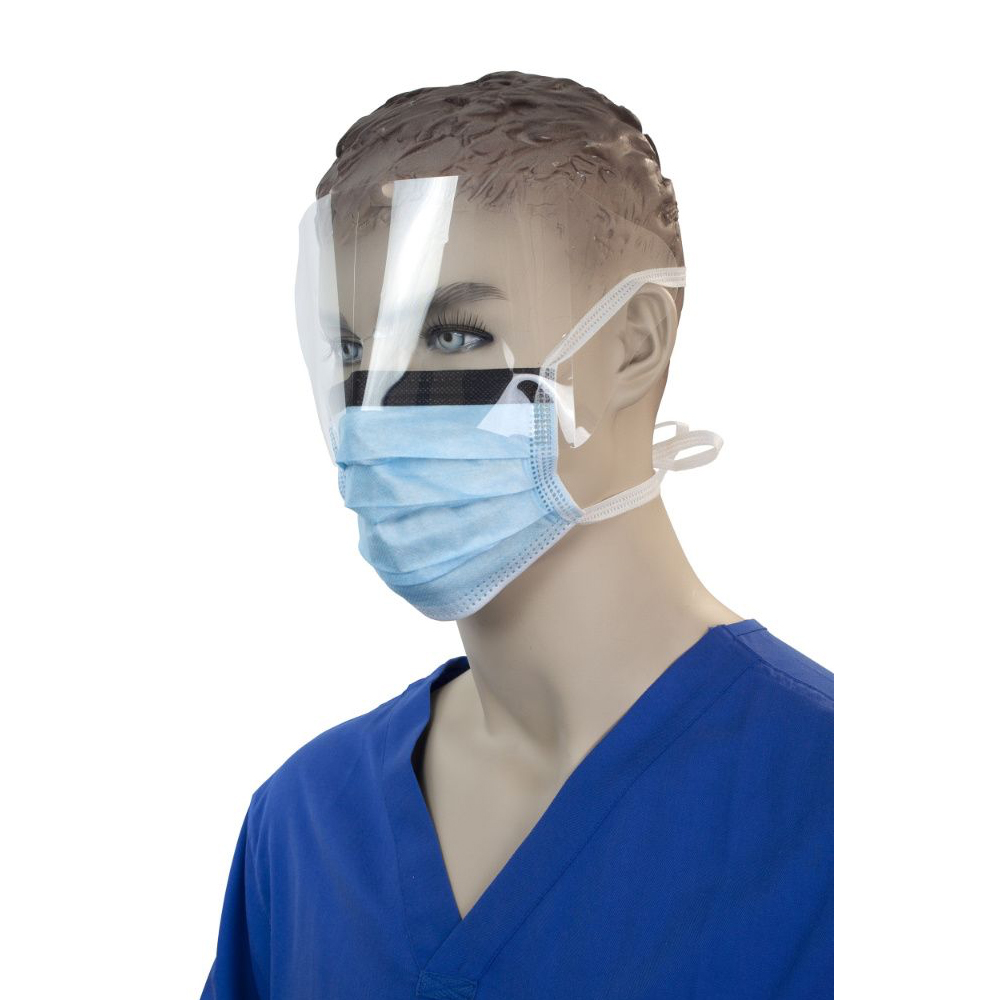 – Also available with optically clear plastic wraparound face shield which provides protection for the face and eyes against pathogens contained in body fluids
