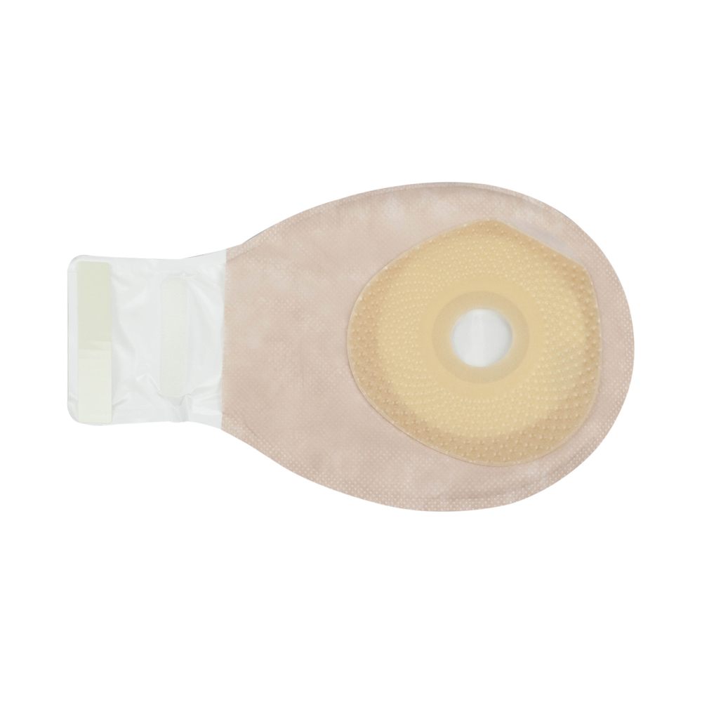 A one-piece, drainable pouching system designed to be opened at the bottom when emptying. These pouches are most suitable for colostomies or ileostomies. The SoftFlex barrier is a standard wear skin barrier that is gentle to the skin. The integrated Lock ‘n Roll microseal closure utilizes plastic interlocking fasteners to create a secure closure at the bottom of the pouch. The AF300 filter allows for a slow release and deodorization of gas from the pouch. Soft, beige ComfortWear pouch panels help provide comfort.
