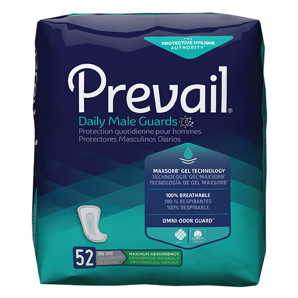 Experience confident, worry-free protection with Prevail Male Guards (PV-811), specifically engineered to provide light to maximum absorbency for men experiencing urinary leakage, dribbling, or post-surgery moisture.