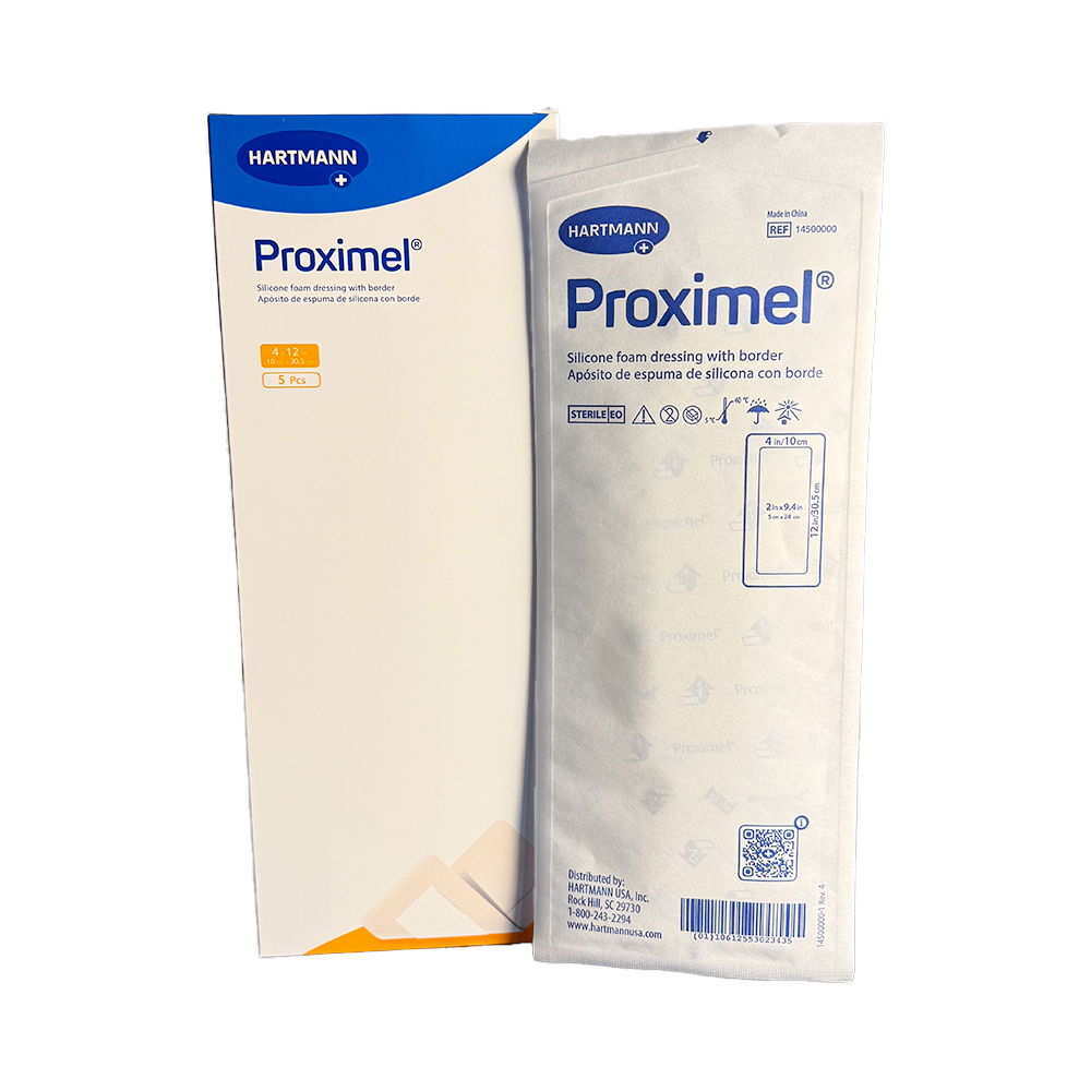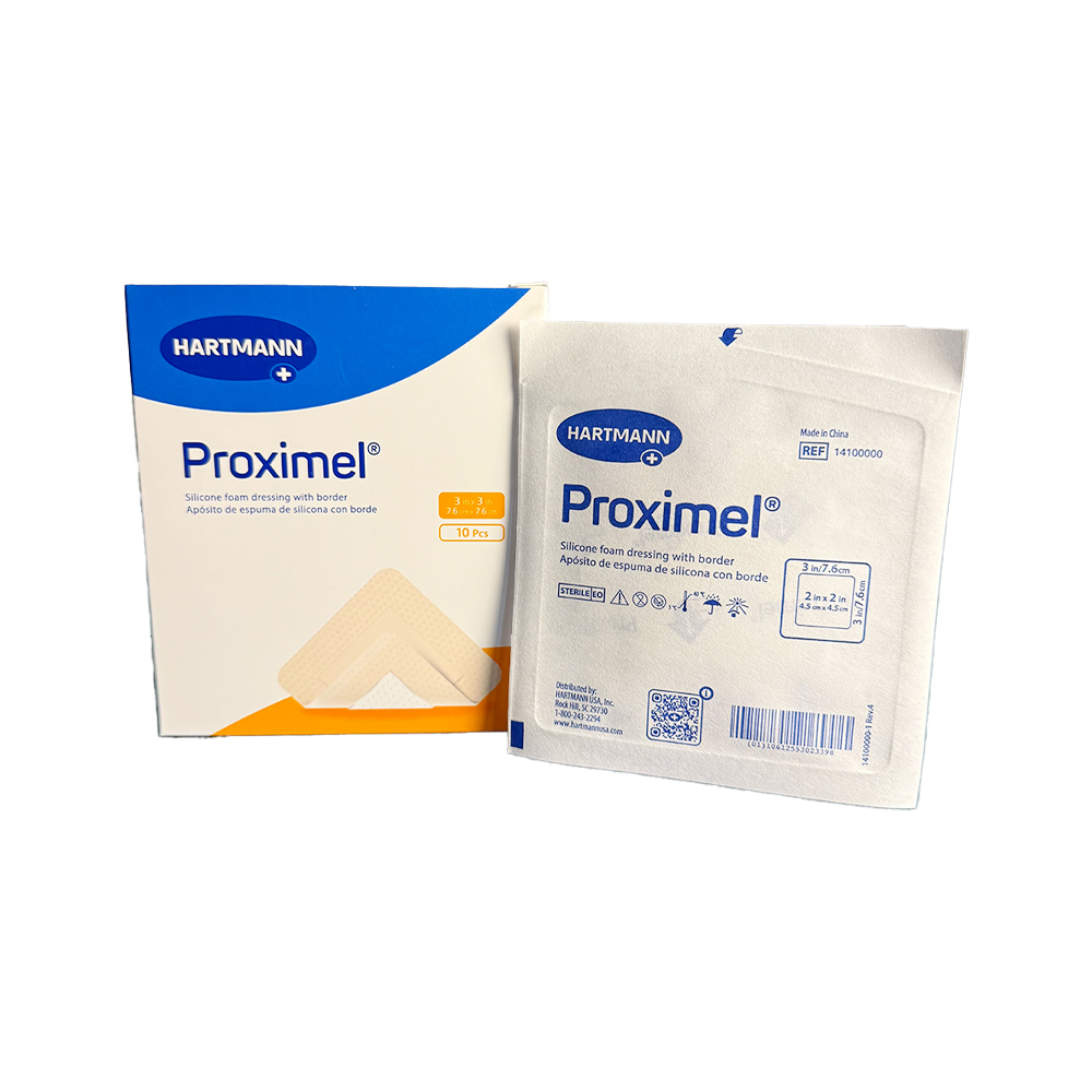Proximel silicone foam dressing is a unique five-layer silicone foam dressing that is gentle on skin to help reduce complications, enhance patient comfort, and promote optimal wound care and healing. This unique five-layer silicone foam is gentle on skin to help reduce irritation and pain, enabling the dressing to be changed without stripping epidermal cells. It may also be lifted or repositioned without the risk of leakage or loosening, while small perforations in the absorptive pad reduce risks of in-growth. The foam layer of Proximel evenly distributes fluid across the dressing to help prevent maceration of the skin, while providing a waterproof barrier that seals out bacteria and contaminants.
